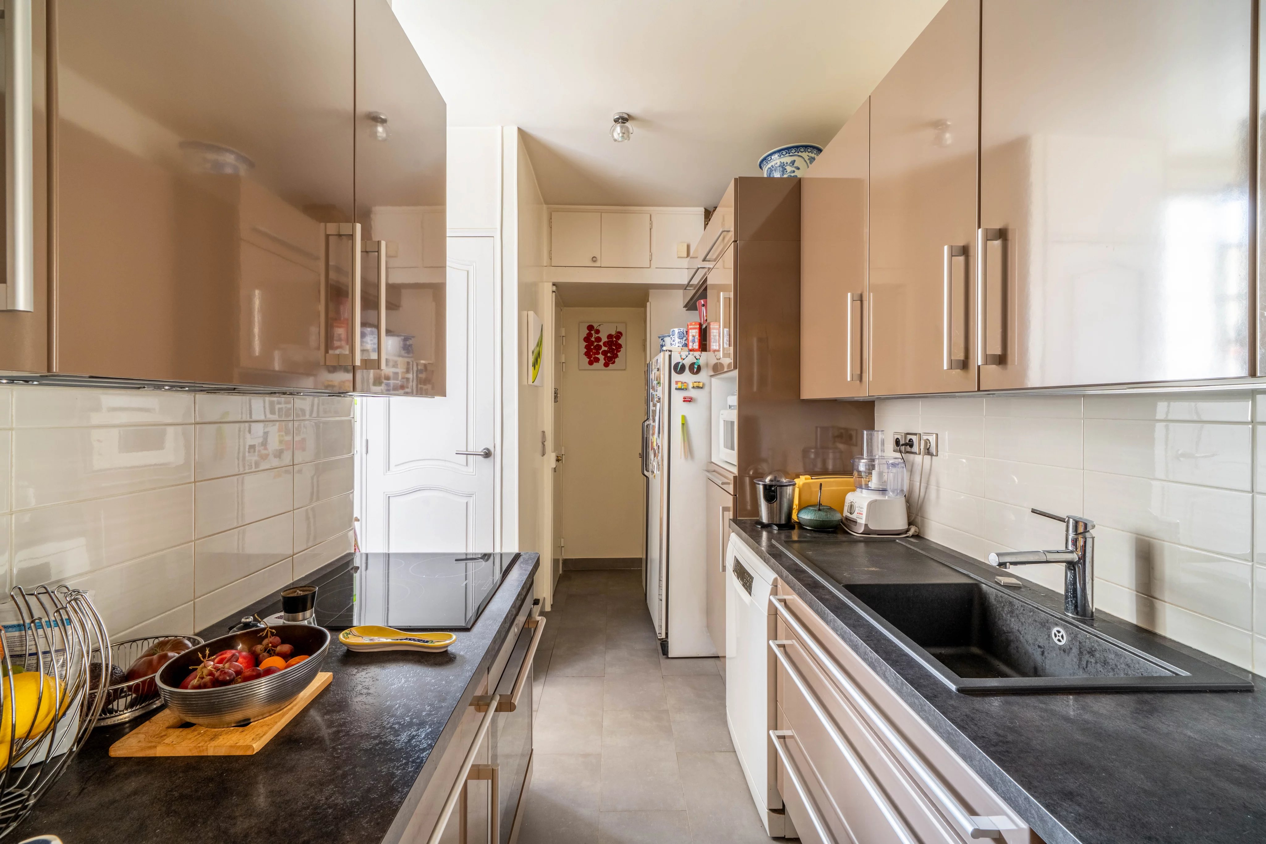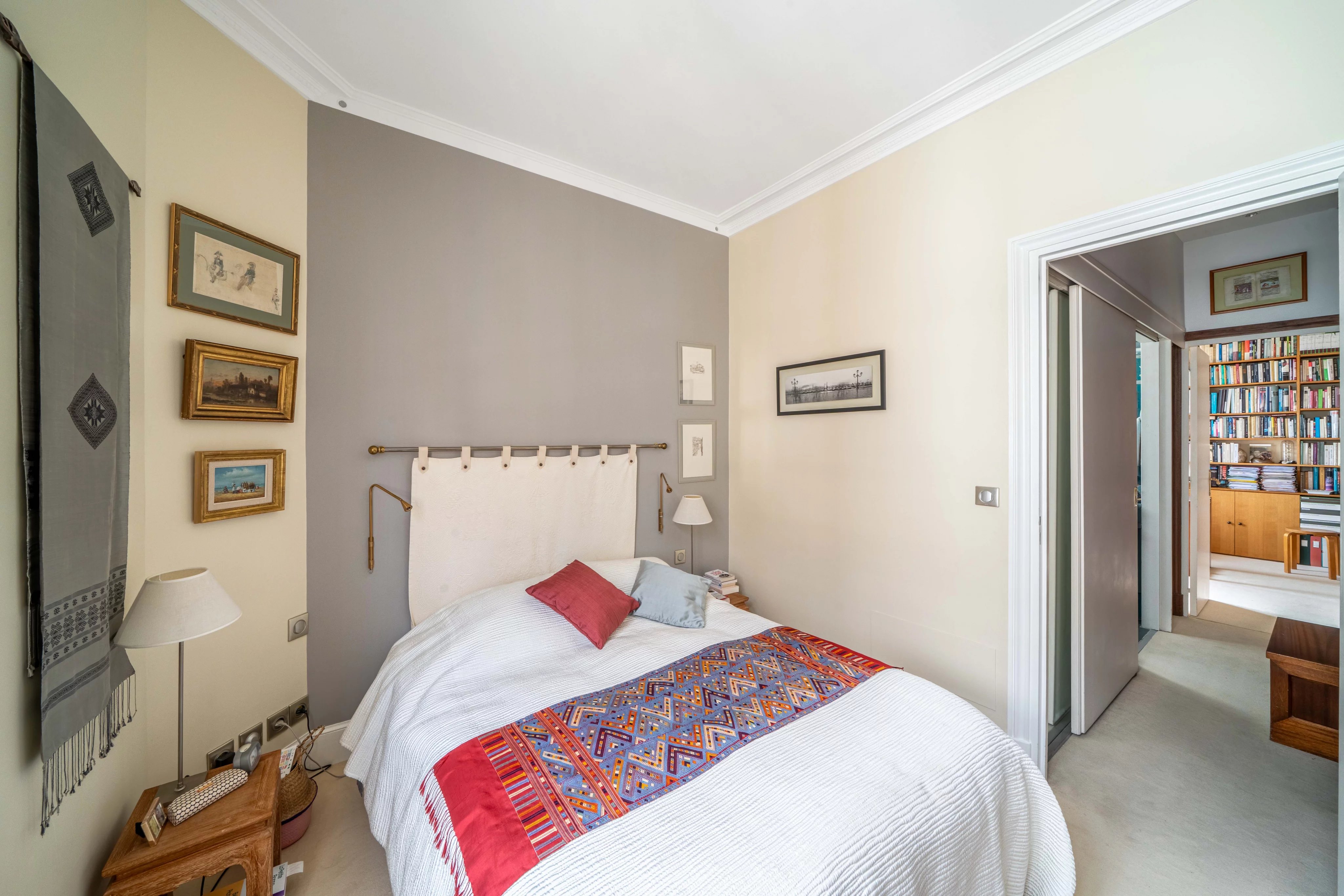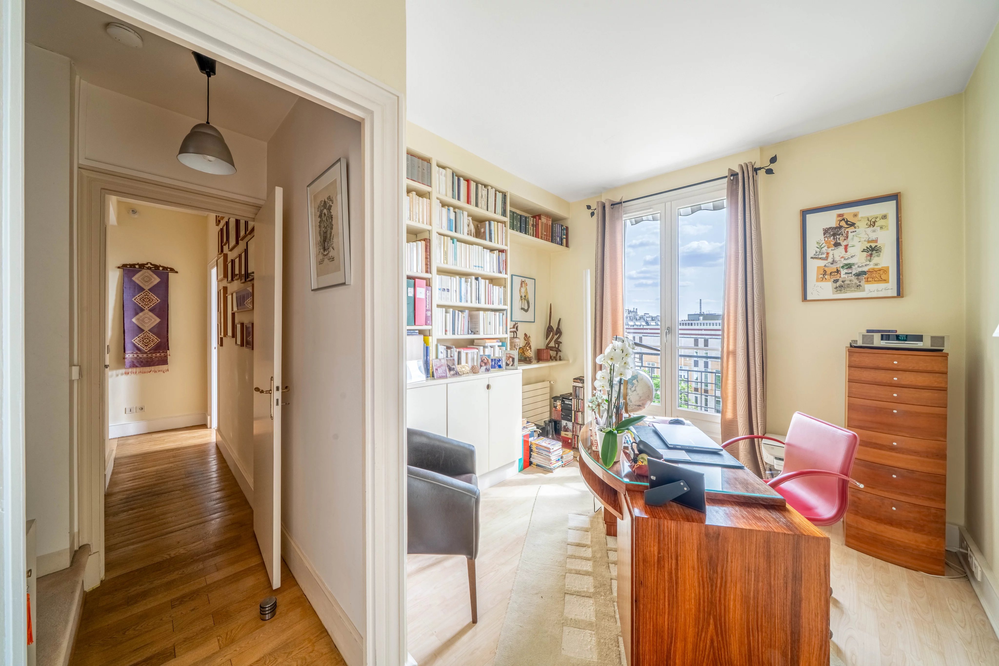 Recently refreshed by a renowned house, this apartment offers quality amenities and a flexible layout. It stands out for its meticulous finishes: built-in bookshelves, custom storage, carefully selected materials, and elegant paints.