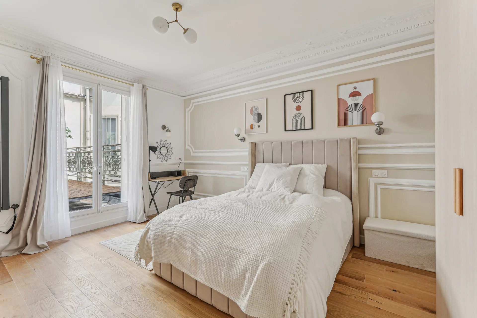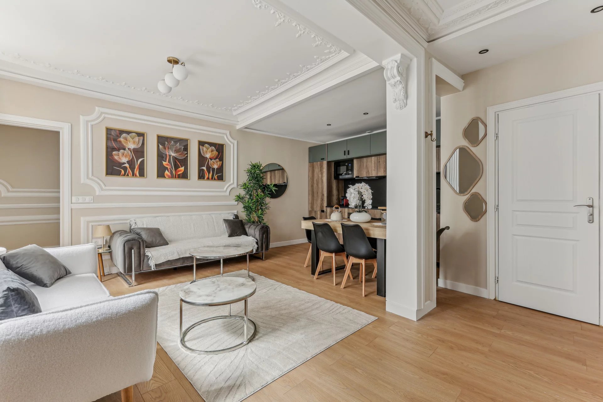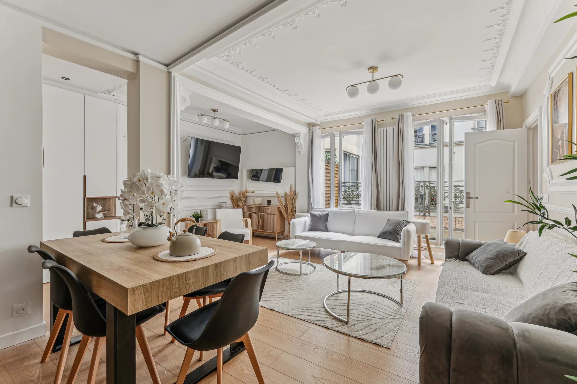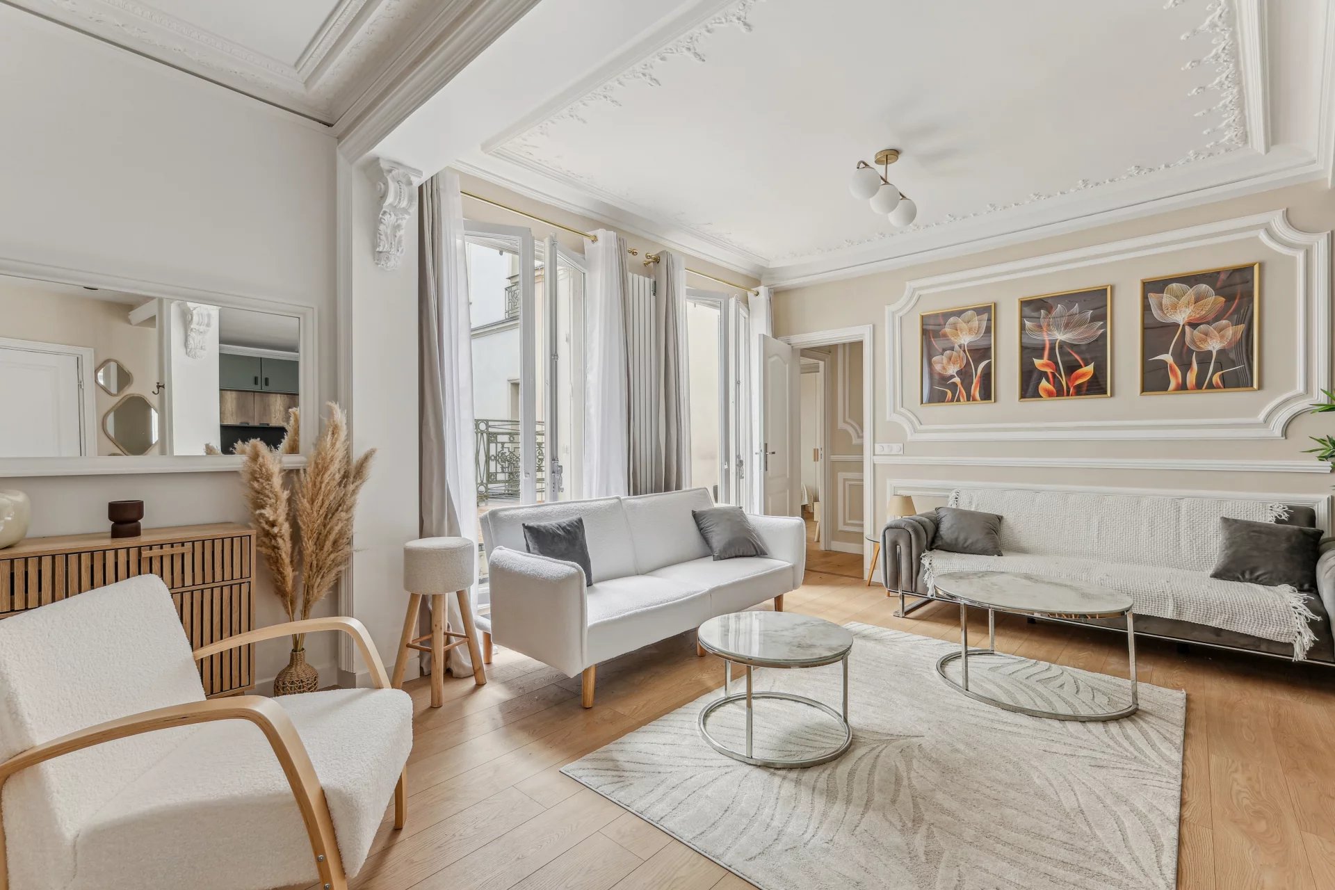 Paris 75009- Lafayette - On the 3rd floor by elevator of a building overlooking a courtyard, this apartment has been refurbished to a very high standard.